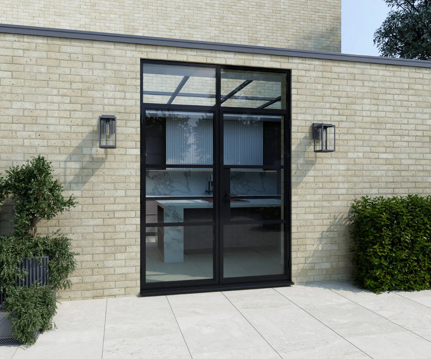 1400mm Black Heritage Aluminium French Doors + 290mm Top Window